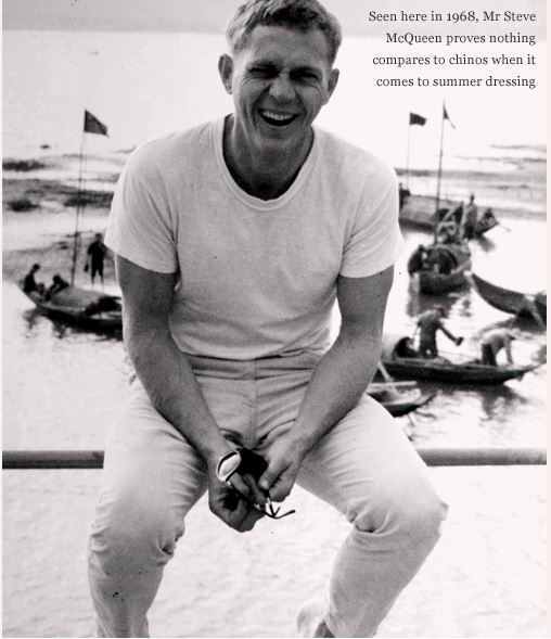 Dans les années 60, Le Chino sera également popularisé par de nombreuses stars du cinéma comme Alain Delon, Steve McQueen, Belmondo, James Dean …