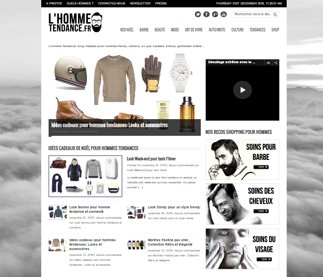 Réponse : Au début, j’ai commencé en axant surtout mes articles sur l’univers de la barbe (étant barbu et pogonophile). Petit à petit j’ai ouverts le blog à d’autres thématiques plus lifestyle avec en particulier la mode masculine, les soins du corps, les voyages, la culture, la moto … bref tout ce qui m’intéresse personnellement. L’HommeTendance est devenu un véritable magazine lifestyle pour homme, sur lequel nous abordons des sujets divers et variés.