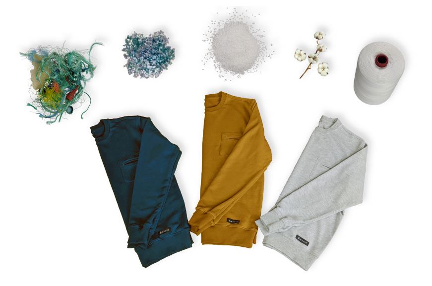 Un partenaire repêche des tonnes de plastique en mer Méditerranée et dans l’océan Atlantique. Ensuite, via un procédé breveté, ce plastique marin est nettoyé, broyé en paillettes, fondu en granulés et enfin tissé en fil.